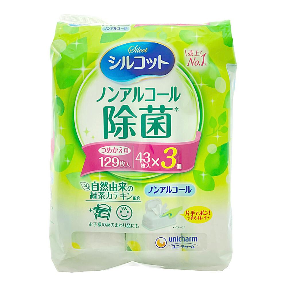 ユニ・チャーム シルコット ノンアルコール除菌 ウェットティッシュ 詰替 43枚×3個