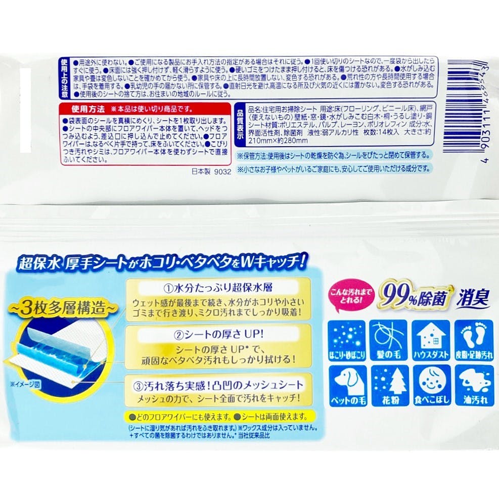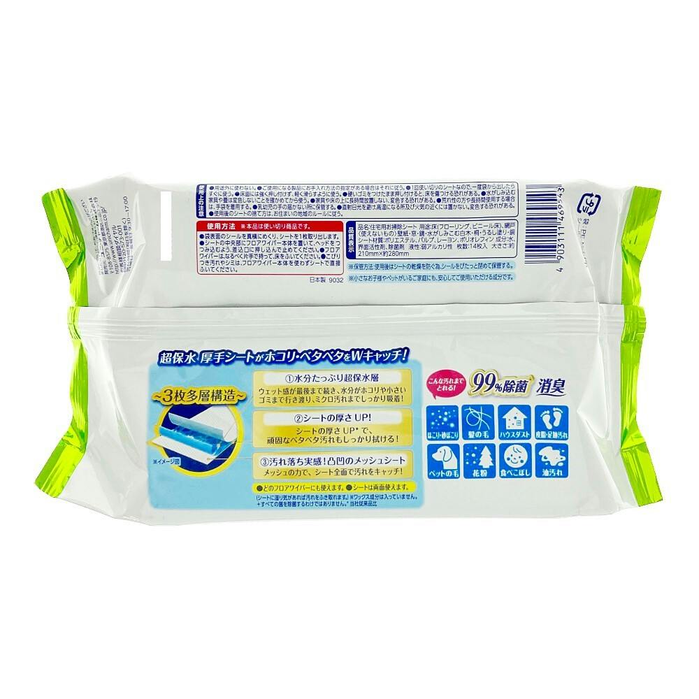 ●水分たっぷり超保水層/ウェット感が最後まで続き、水分がホコリや小さいゴミまで行き渡り、ミクロ汚れまでしっかり吸着 ●シートの厚さUP/頑固なベタベタ汚れもしっかり拭ける ●汚れ落ち実感、凸凹のメッシュシート/シート全面で汚れをキャッチ