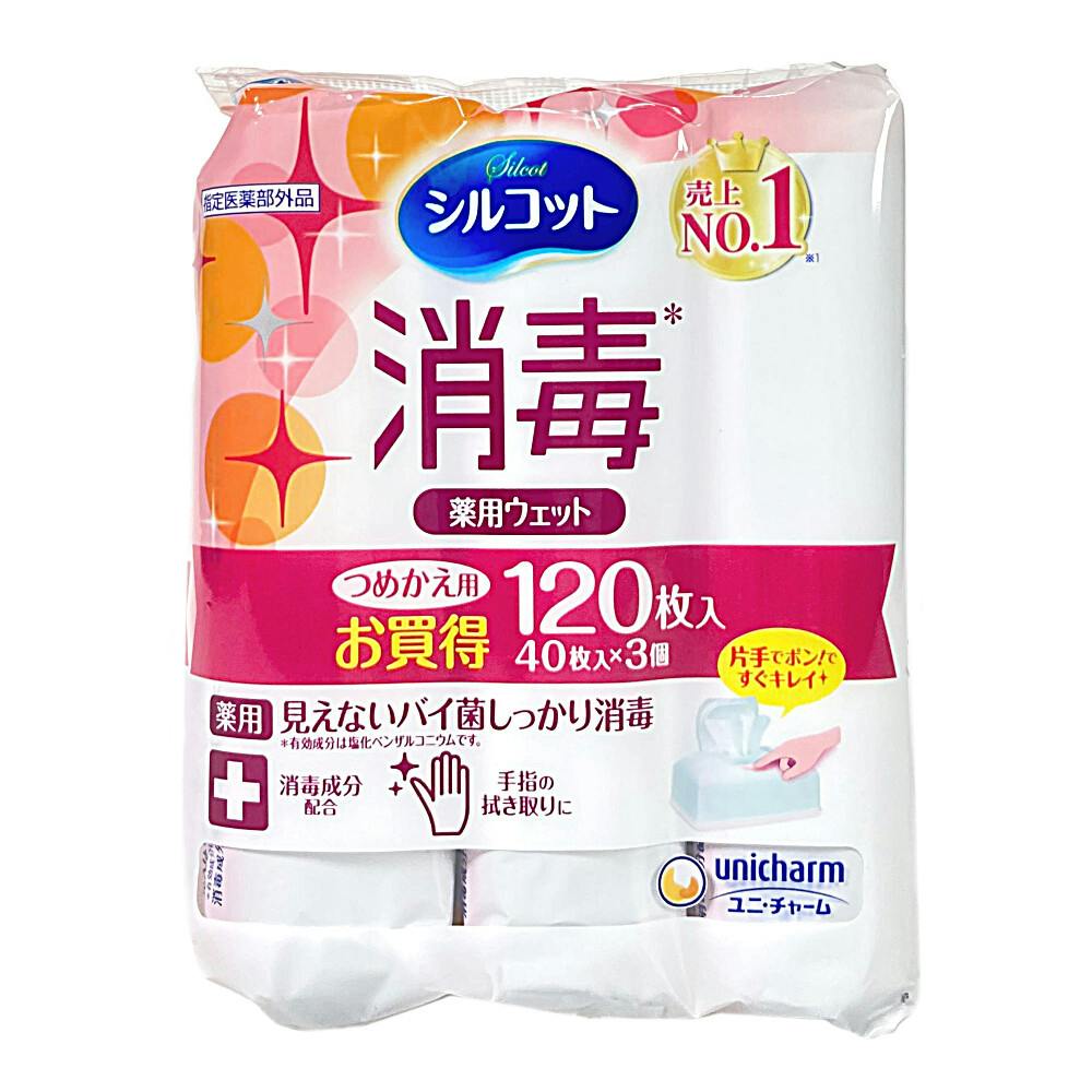 ユニ・チャーム シルコット 消毒ウェット 詰替 40枚×3個