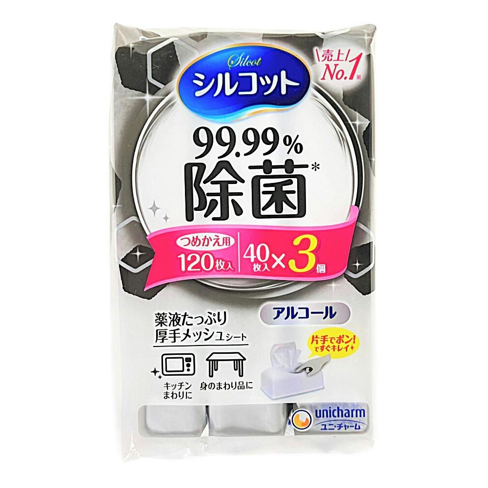 ユニ・チャーム シルコット 99.99%除菌ウェットティッシュ 詰替 40枚×3個