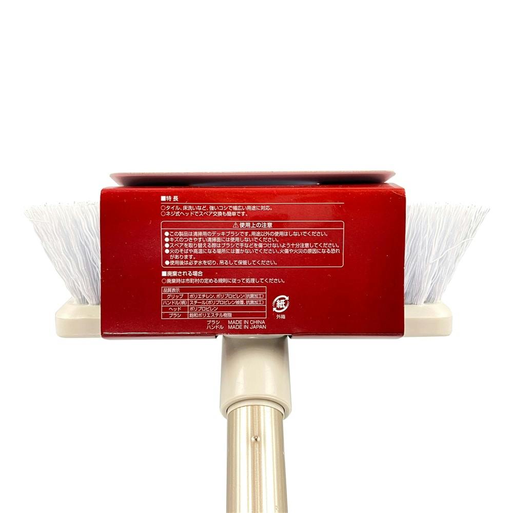 グリップ/ポリエチレン・ポリプロピレン(抗菌加工)、ハンドル(柄)/スチール(ポリプロピレン被覆・抗菌加工)、ヘッド/ポリプロピレン、ブラシ/飽和ポリエステル樹脂
