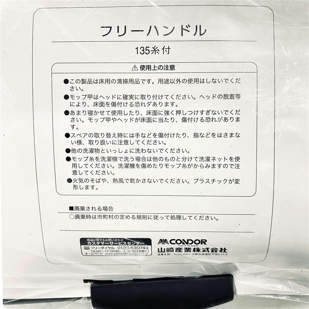 本体:グリップ/ポリエチレン・ポリプロピレン(抗菌加工)、ハンドル(柄)/スチール(ポリプロピレン被覆・抗菌加工)、ヘッド/ポリプロピレン・ステンレス、モップ糸:甲/ポリプロピレン、組成繊維/綿・ポリエステル