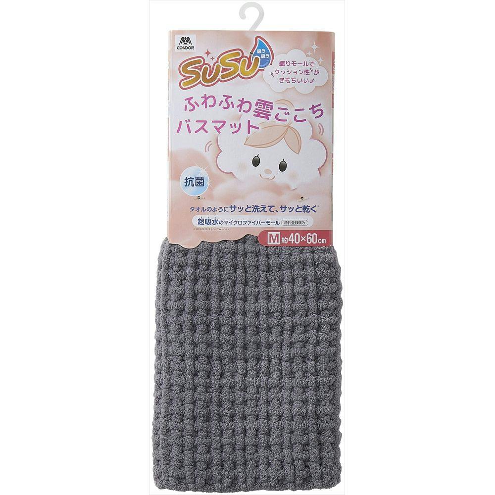 SUSU 抗菌 雲バスマット ニュートラルグレ 40×60cm