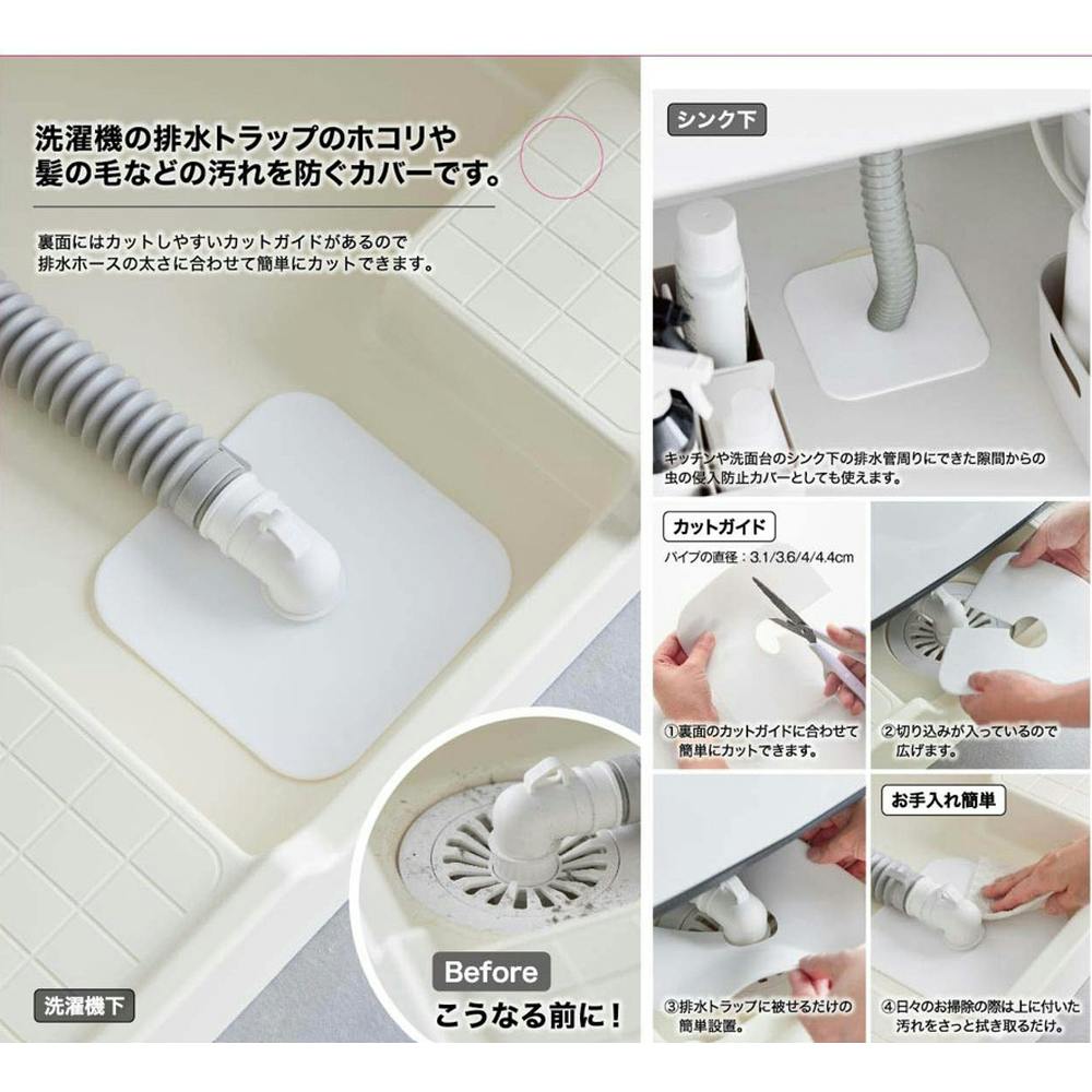 ●洗濯機の排水トラップへのホコリ、髪の毛の侵入防止。●キッチンや洗面台のシンク下の排水管まわりにできた隙間からの虫などの侵入防止。