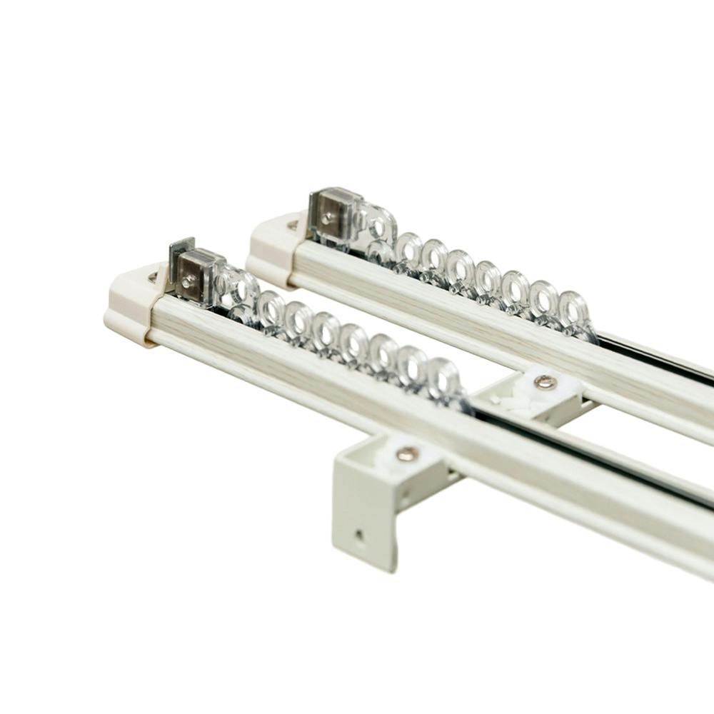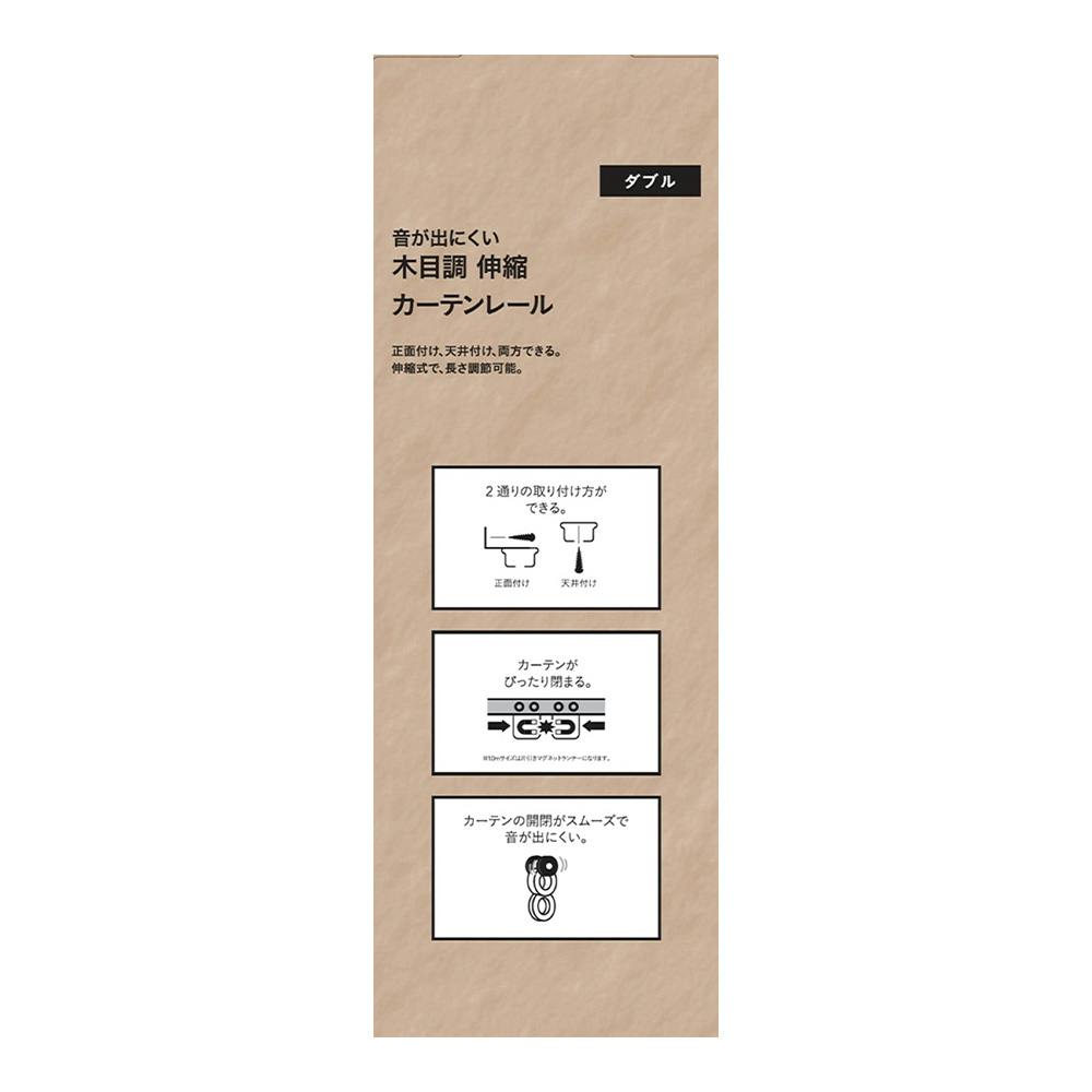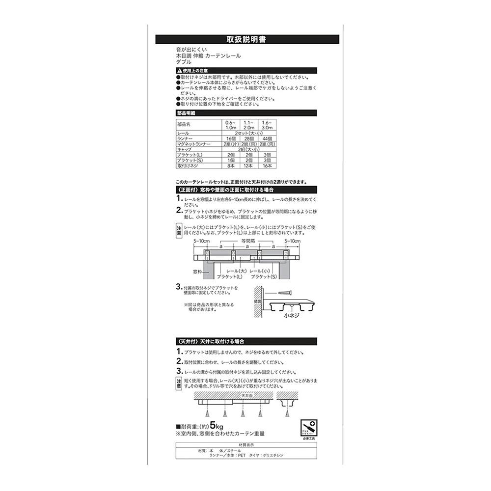 音が出にくい木目調伸縮カーテンレール ダブル ホワイト 1m