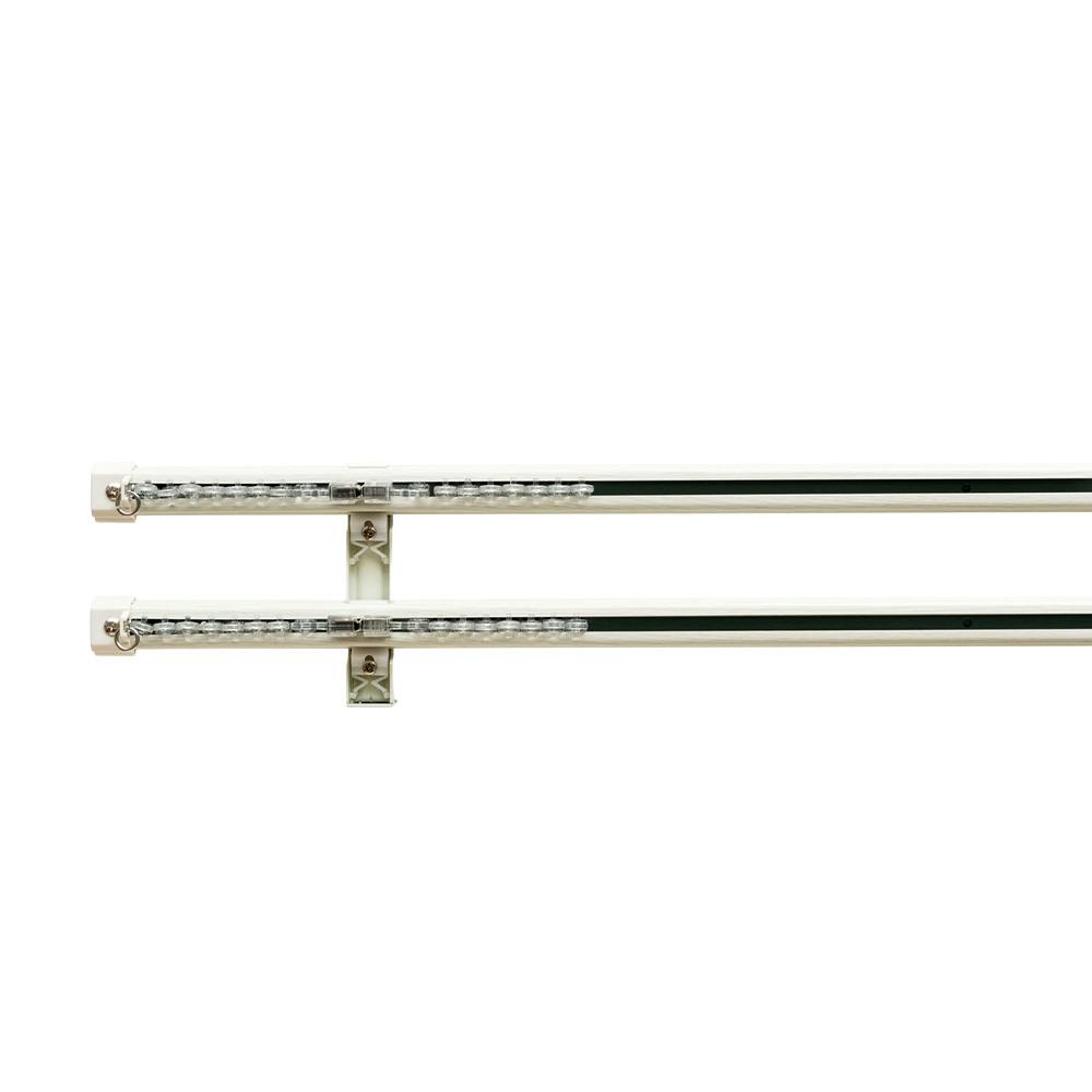 音が出にくい木目調伸縮カーテンレール ダブル ホワイト 2m