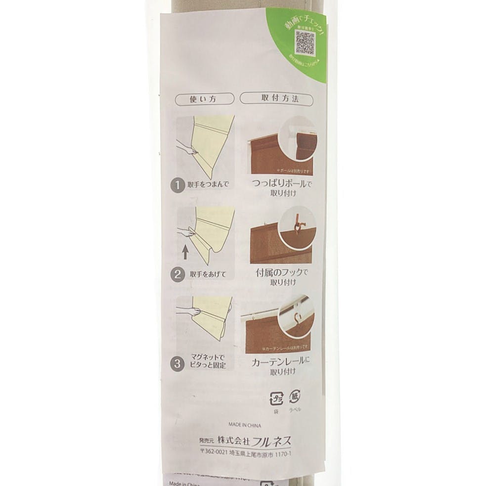 ●使い方/1.取手をつまんで 2.取手をあげて 3.マグネットでピタっと固定 ●取付方法/・つっぱりで取り付け ・付属のフックで取り付け ・カーテンレールに取り付け