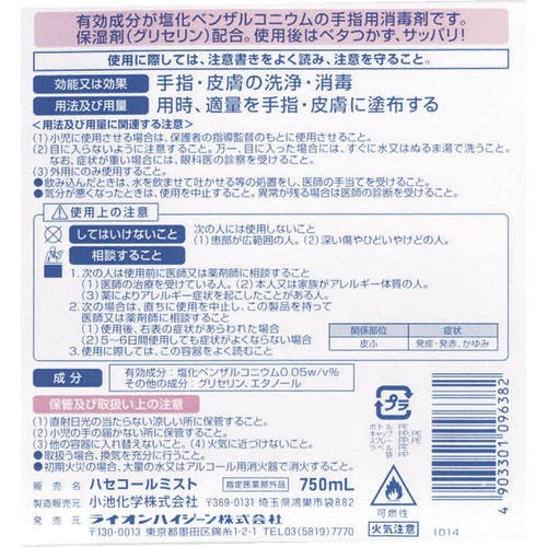有効成分:ベンザルコニウム塩化物