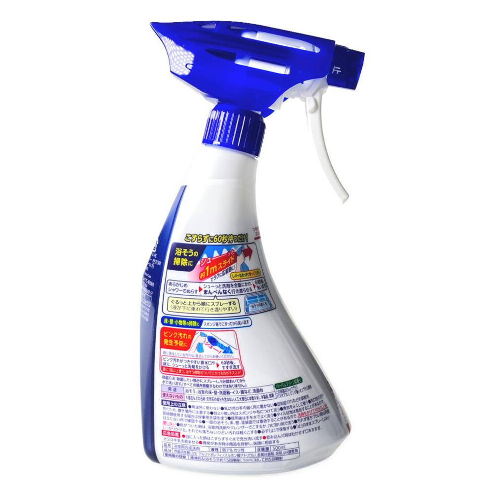 ●浴そうをこすらず洗えるバスタブクレンジングに銀イオンを配合。「除菌」と「ピンク汚れ予防」もこすらずにできる。●ブルーのミストを浴槽全体にシューーッとかけて60秒後に流すだけで、こすらずに汚れを落とせる。