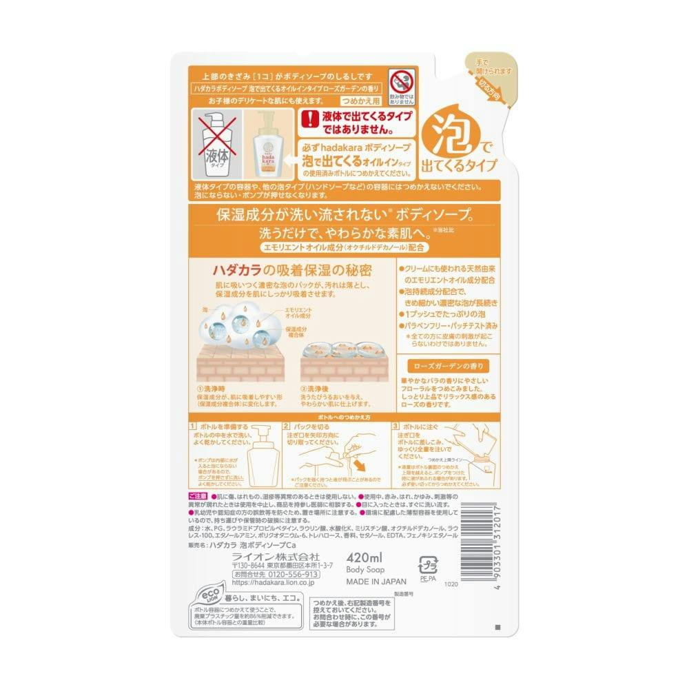 hadakara ボディソープ 泡で出てくるオイルインタイプ 詰替 420ml