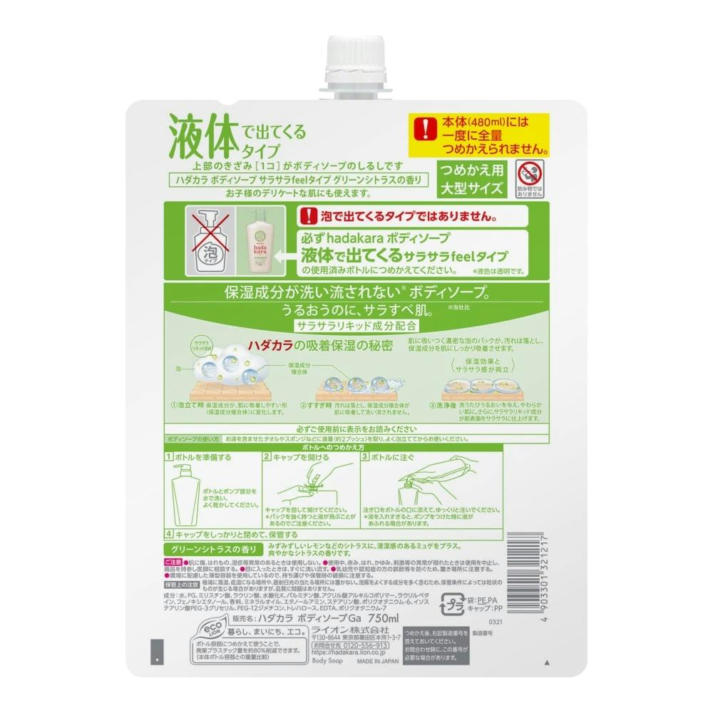 hadakara ボディソープ サラサラfeelタイプ グリーンシトラスの香り 詰替 大型 750ml