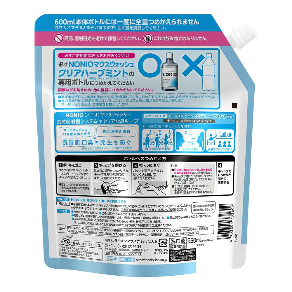 NONIOマウスウォッシュ eco PACK クリアハーブミント 詰替 950ml