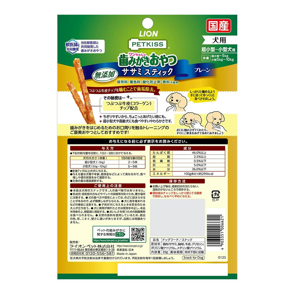 ライオン PETKISS ワンちゃんの歯みがきおやつ 無添加ササミスティック プレーン 35g
