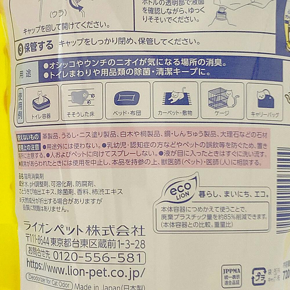 LION シュシュット! オシッコ・ウンチ専用 消臭&除菌 猫用 つめかえ用 特大