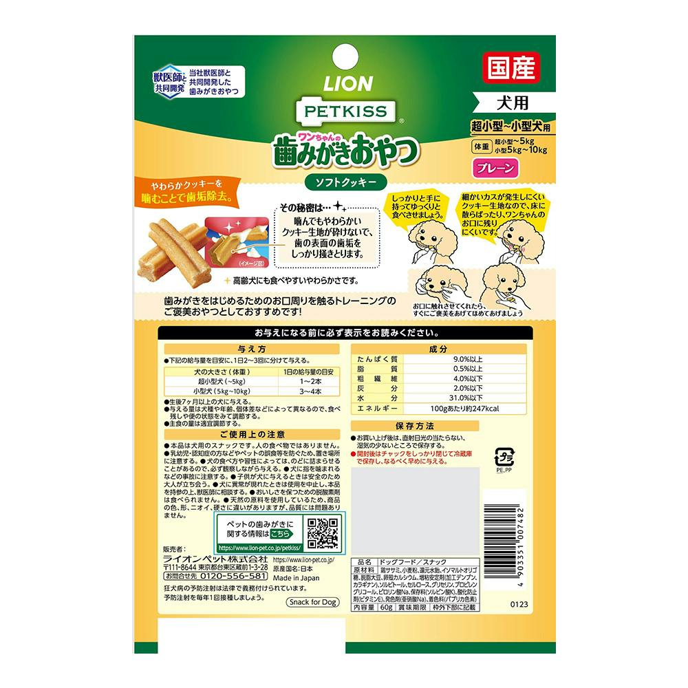 ライオン PETKISS ワンちゃんの歯みがきおやつ ソフトクッキー プレーン 60g