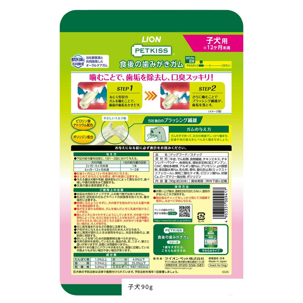 ライオンペット PETKISS 食後の歯みがきガム 子犬用 90g