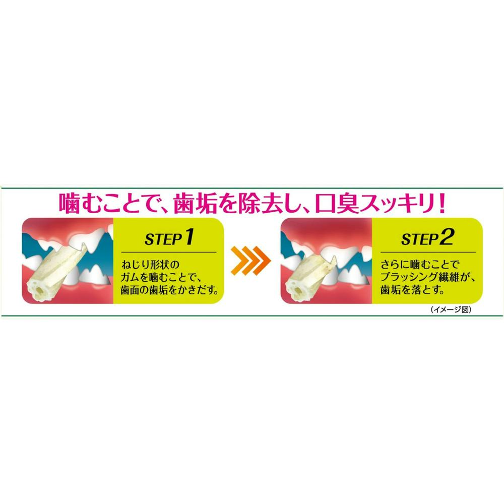 やわらかく細いガムを束ねたロープ状ガムを?むことで歯面の歯垢をかき出す