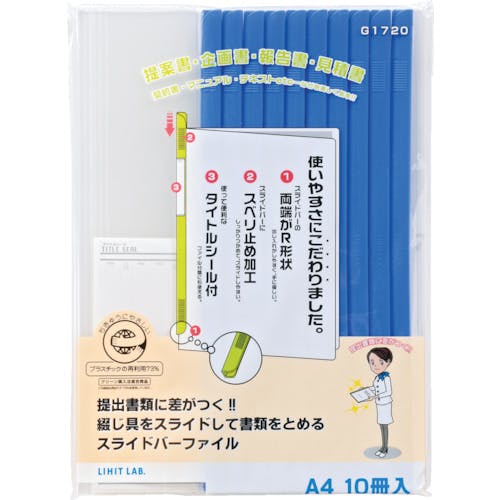 【CAINZ-DASH】LIHIT LAB. A4/Sスライドバーファイル(10冊入) 青 G1720-8【別送品】