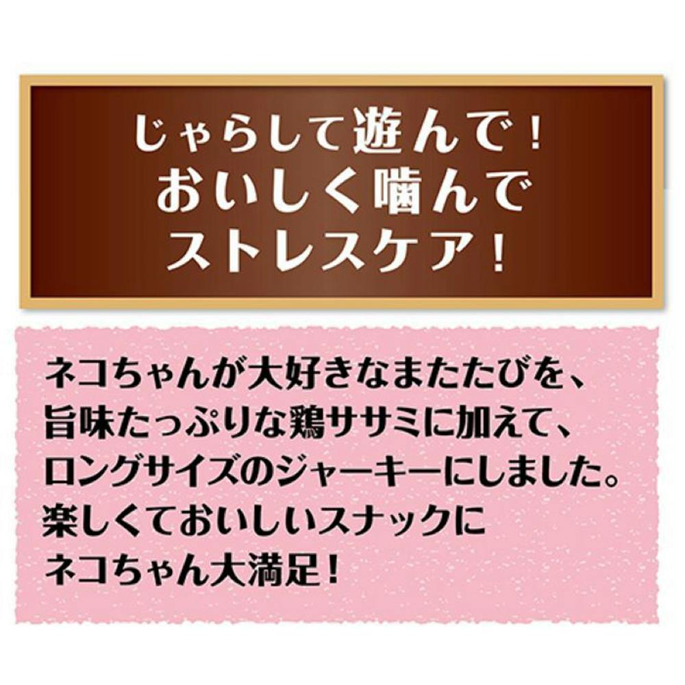 旨みたっぷりな鶏ササミにまたたびを加えたロングサイズのジャーキーです。