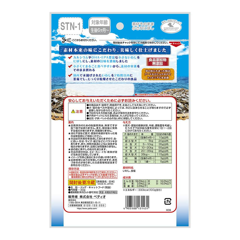 国内で水揚げされたいわしを2時間以内に釜茹でし、じっくり乾燥させたこだわりの逸品。カルシウムやDHA・EPA豊富な小さないわしをにぼしをまるごと使用しているから素材の栄養をそのまま摂ることができます。食品添加物無添加。