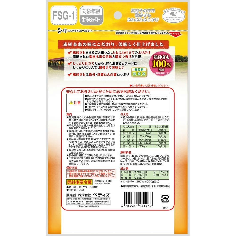 素材そのまま 鶏砂ぎも ふわふわふりかけ 20g