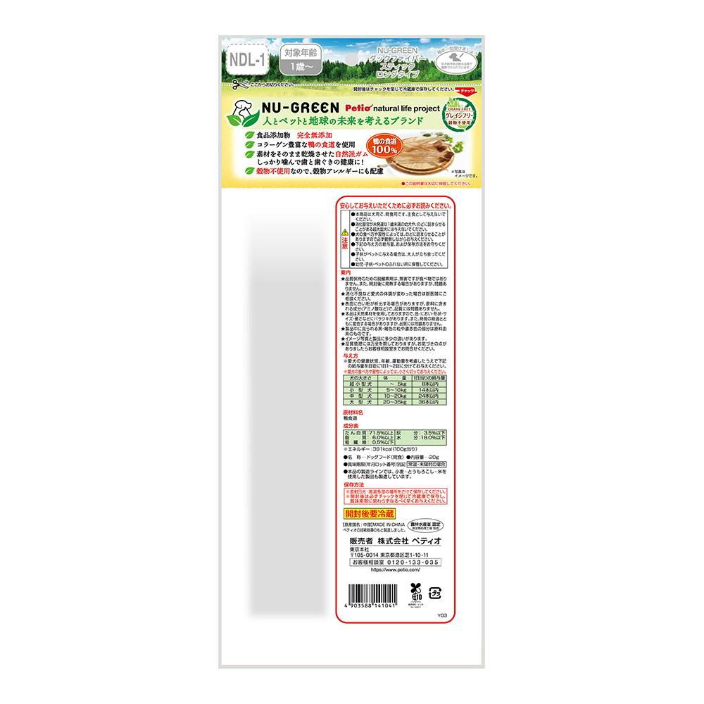 コラーゲン豊富な鴨の素材をそのまま乾燥させた自然派ガムです。噛むことで歯と歯ぐきの健康維持に。美味しさ長持ちのロングタイプ。穀物不使用なので、穀物アレルギーにも配慮。食品添加物完全無添加。農林水産省認定 鳥加熱処理工場製造。