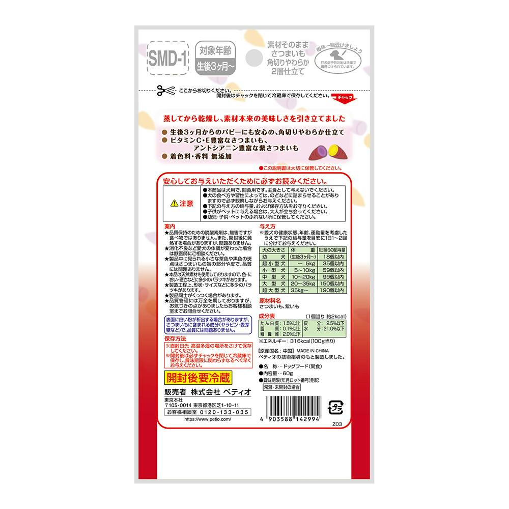 紫さつまいも100%使用。生後3ヶ月からのパピーにも安心の角切りやわらか仕立て。