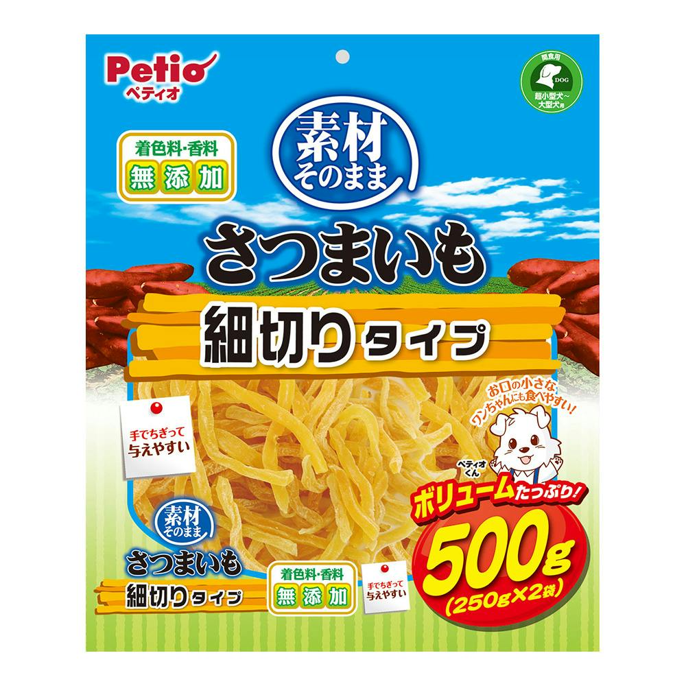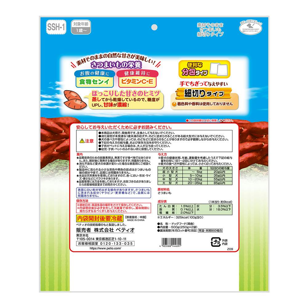 ほっこり甘いさつまいもをそのまま使用。手でちぎって与えやすい細切りタイプ。
