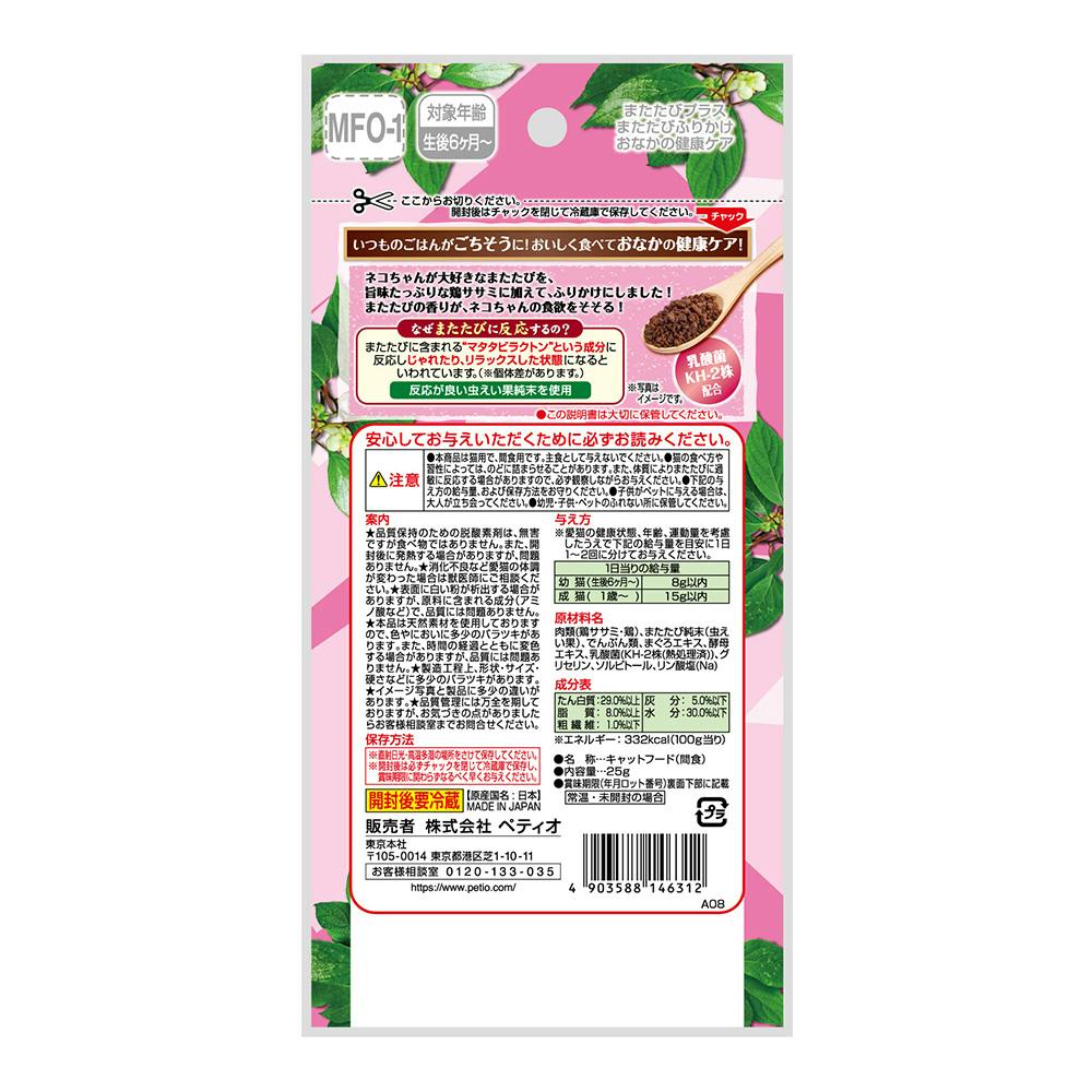 ネコちゃんの大好きなまたたびプラス!またたび入りのふりかけで、いつものごはんがごちそうに!おなかの健康を維持し、免疫力を保つ乳酸菌(KH-2株)配合!