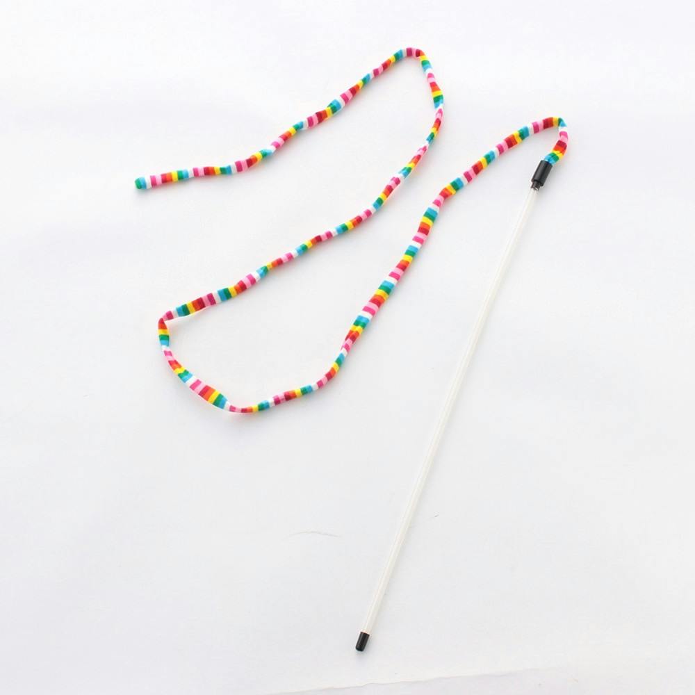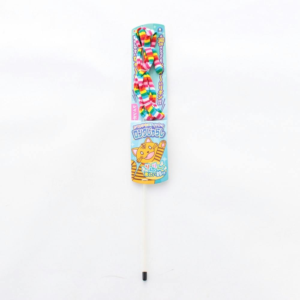 持ち手が長くリボンも長いので、しなやかでダイナミックに動かせるじゃらし。リボンの先端に鈴がついているのでネコちゃんも大興奮。