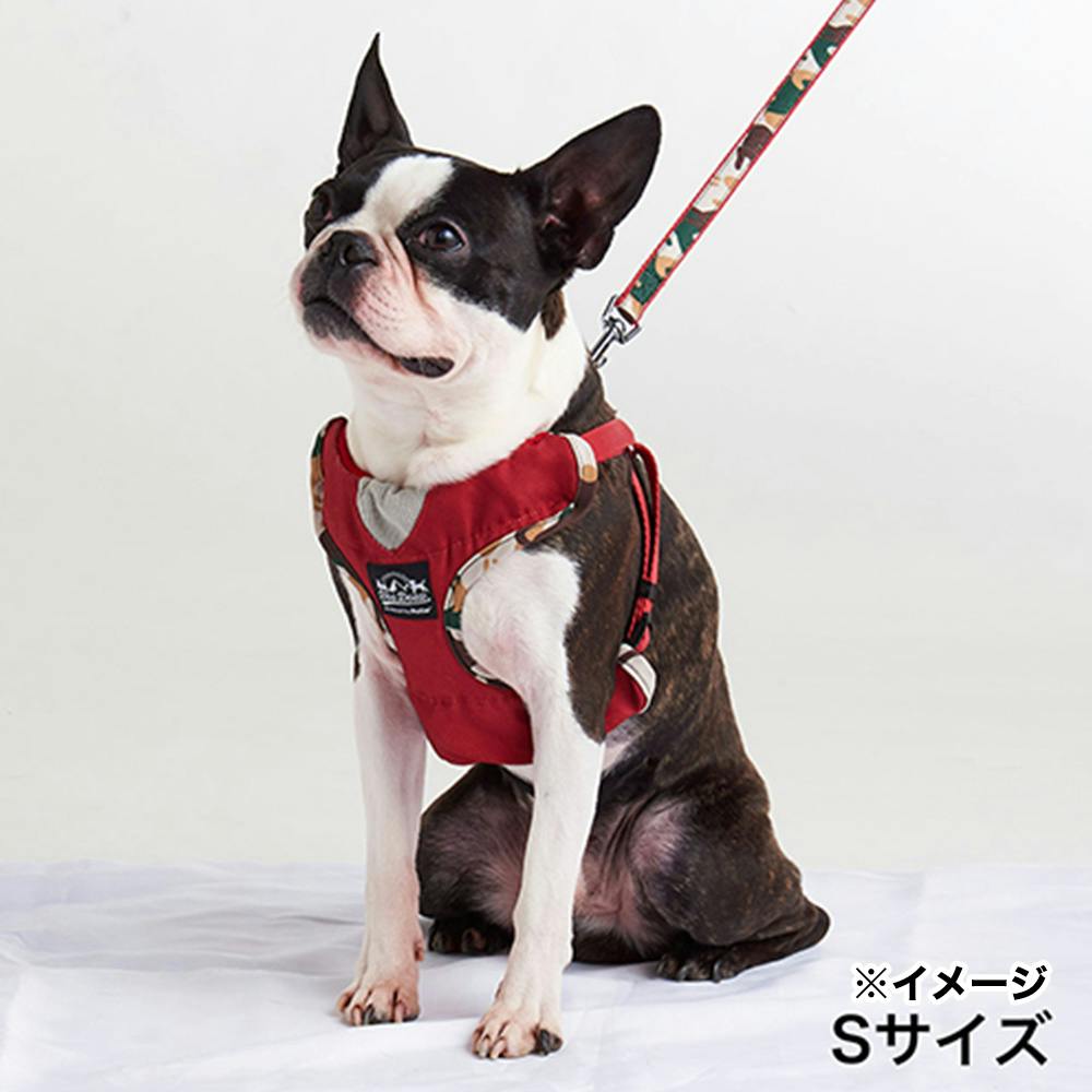 リサイクルポリエステルを使用し、抗菌加工を行った生地を使用。撥水加工で汚れが落ちやすい。容易に付け外しができるワンタッチバックル採用。内側はクッション生地で愛犬の負担を和らげる。人気の迷彩柄。