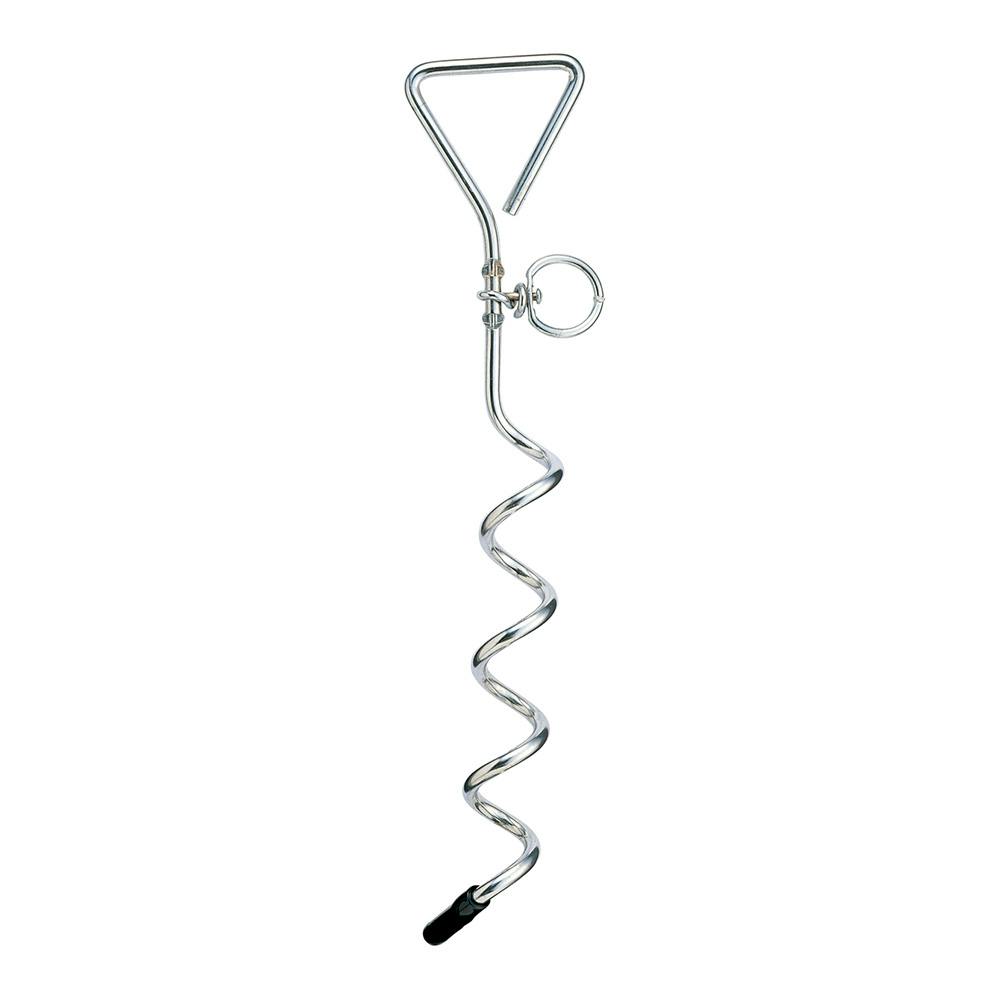 ●上部三角部分を回しながら土の中に埋め込みます。●土が硬すぎる時は、上部三角部分内に木材等を入れ、テコの応用で回し込んでください。●中程のリングカンは、鎖等をつないでお使いください。