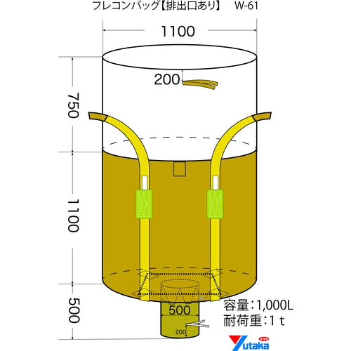 【CAINZ-DASH】ユタカメイク フレコンバック 排出口有り 1100φX1050H W-61【別送品】