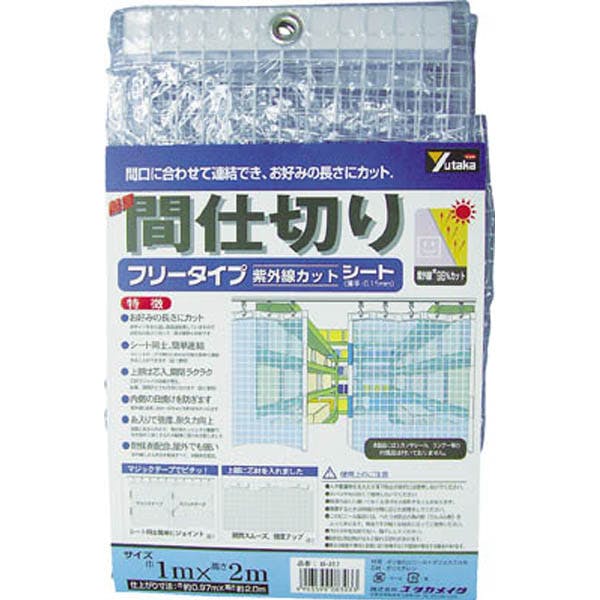ユタカメイク シート 簡易間仕切りシート フリータイプ UV クリア B319 2m 3m ハトメ付き