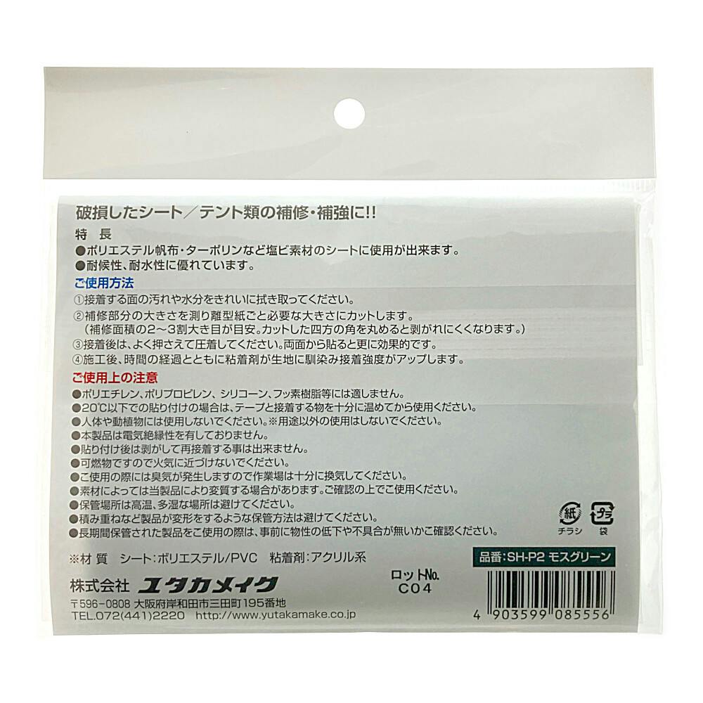 ユタカメイク シート補修用 強力粘着テープ モスグリーン SH-P2 巾14cm 20cm