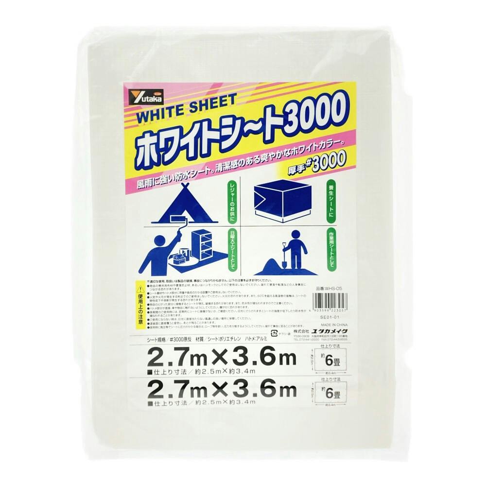 ユタカメイク ホワイトシート #3000 厚手 乳白色 WHS-05 2.7m 3.6m 約6畳 ハトメ付き