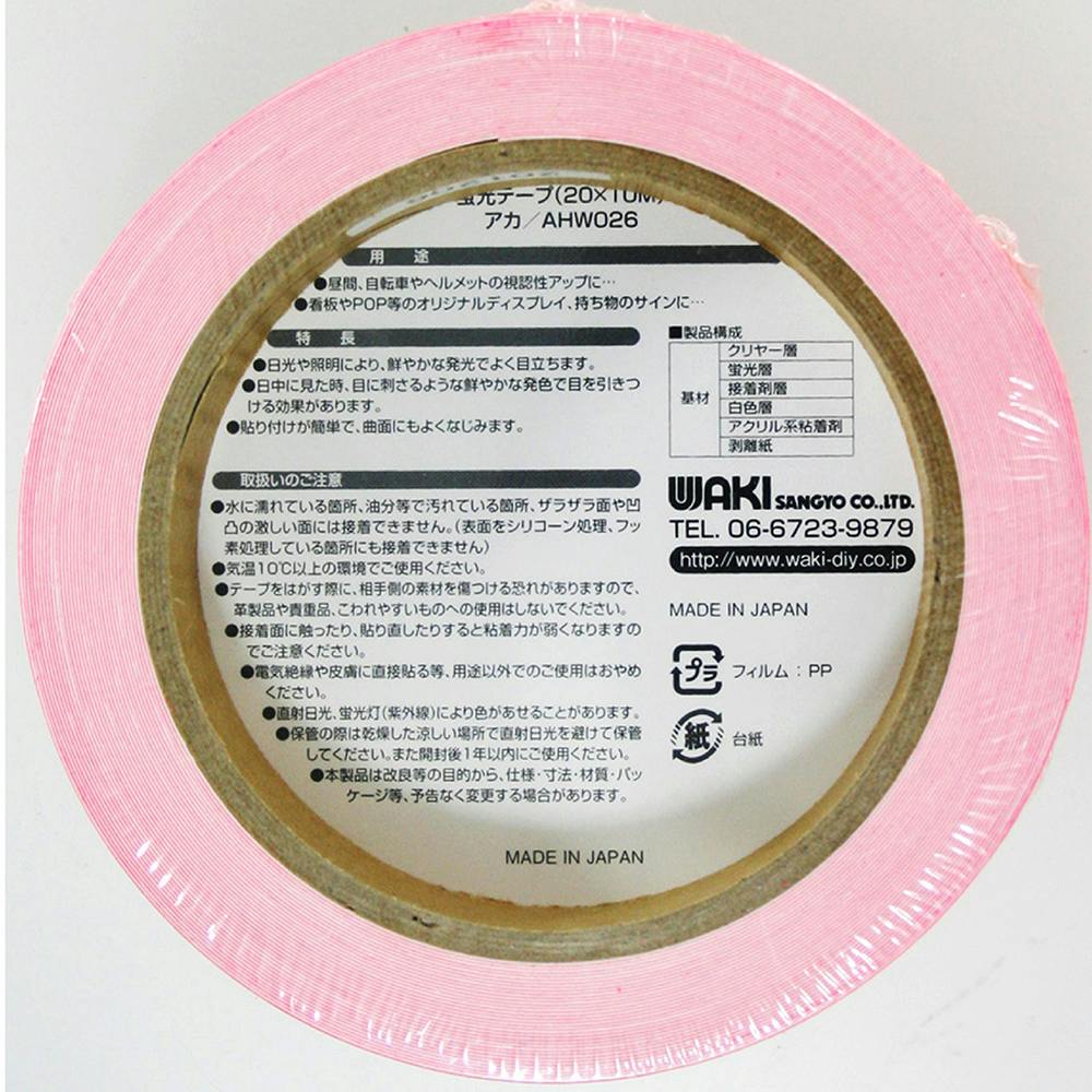 WAKI 蛍光テープ 赤 AHW026 幅20mm×長さ10m