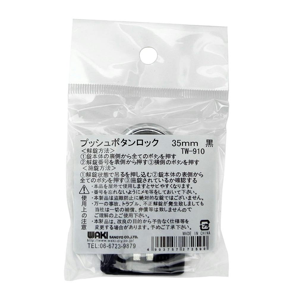 WAKI プッシュボタンロック 黒 TW-910 35mm