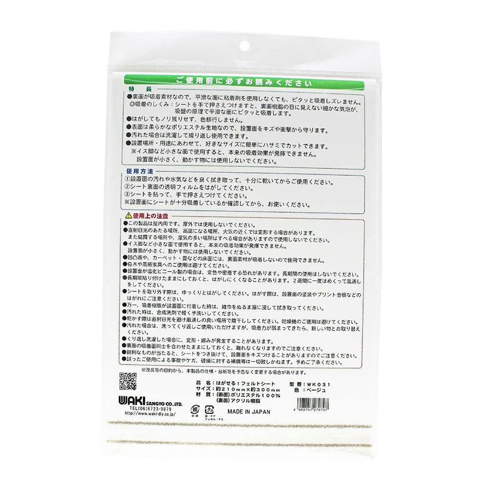 WAKI はがせるフェルトシート ベージュ WK031 2×210×300mm