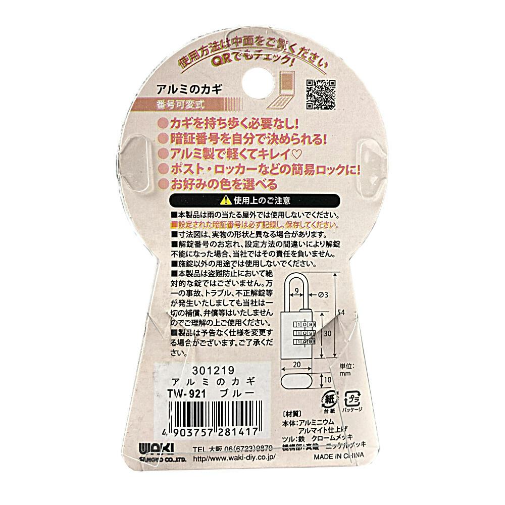 WAKI アルミのカギ ブルー 3段 TW-921