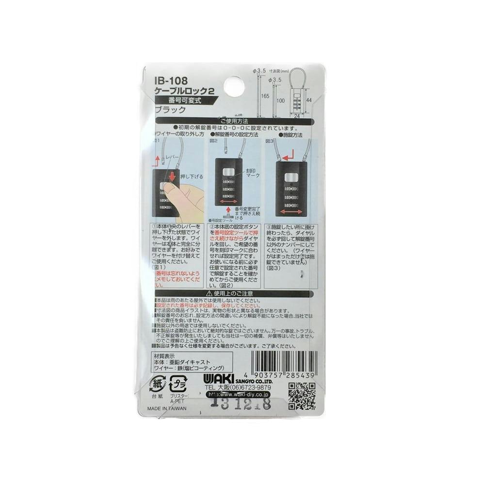 WAKI ケーブルロック2 ブラック IB-108