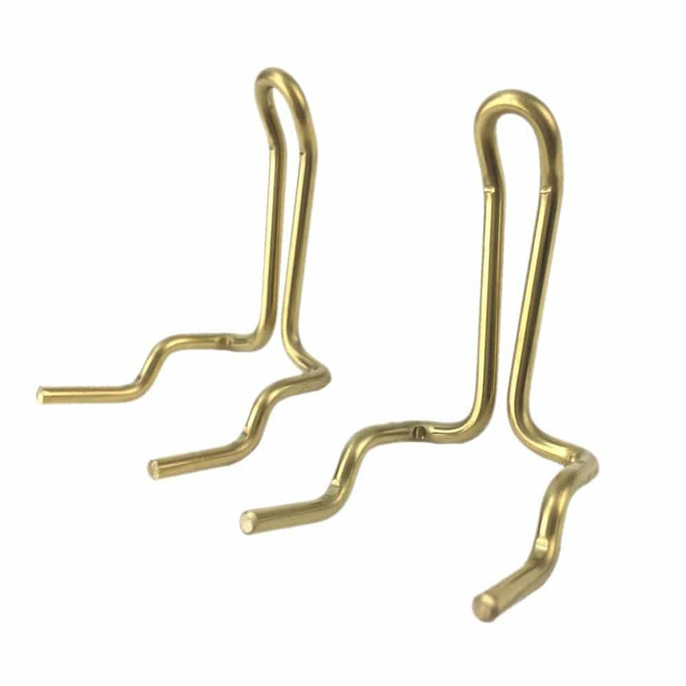 ●真鍮色のフックで収納をおしゃれに! ●穴あきボードクラシックはもちろん、通常の穴あきボード、他社の有孔ボードにもお使いいただけます。 ●時間とともに変化する真鍮ならではの風合いをお楽しみいただけます。 ●穴ピッチ25mm用。