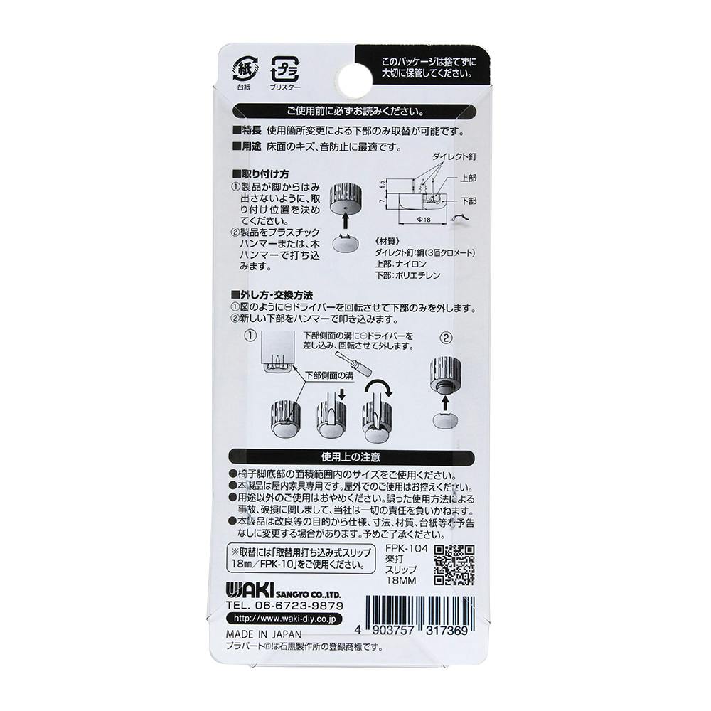 WAKI 楽打ち スリップ ベージュ 18mm FPK-104 4個入