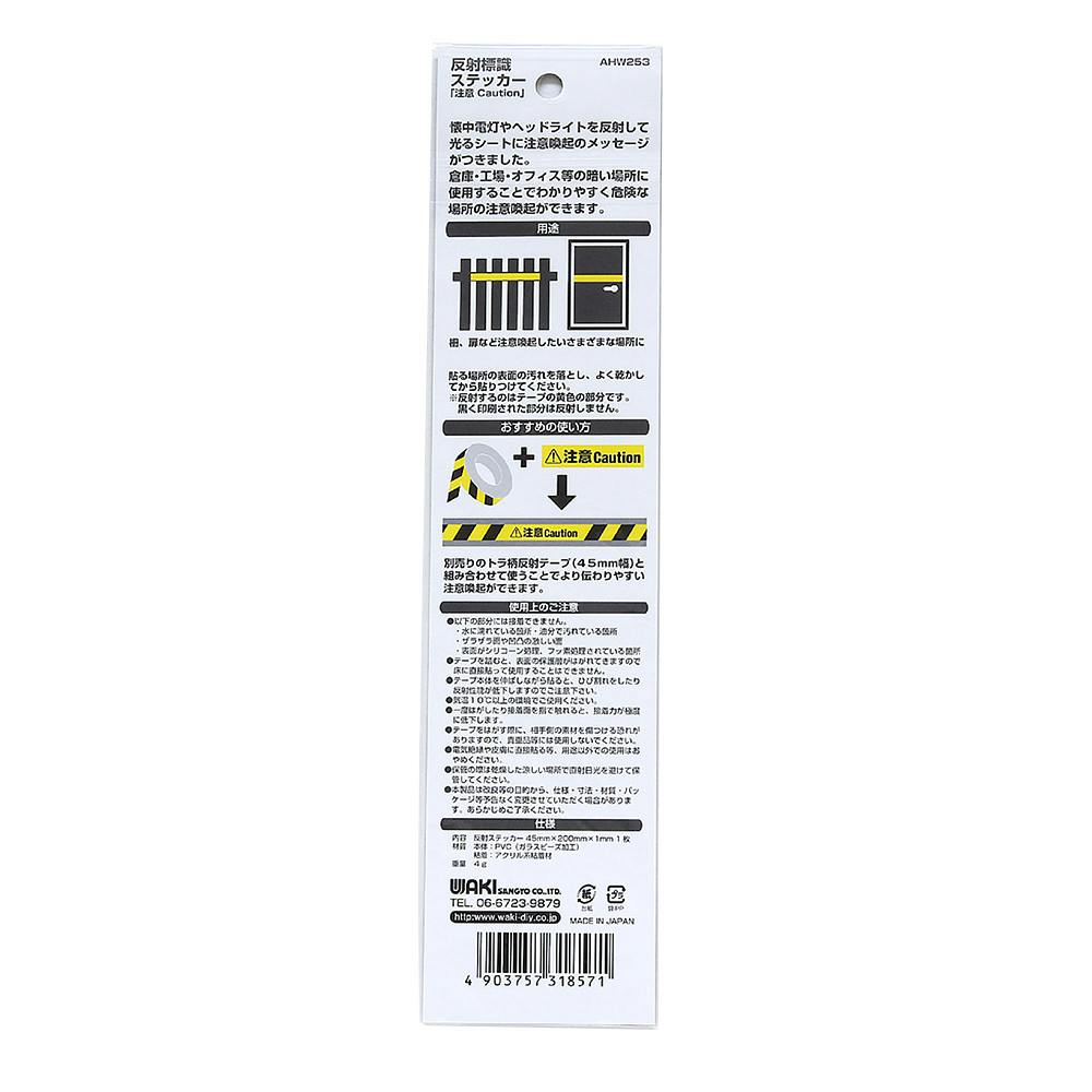 WAKI 反射標識ステッカー「注意Caution」AHW253 幅45mm×長さ200mm×厚み1mm
