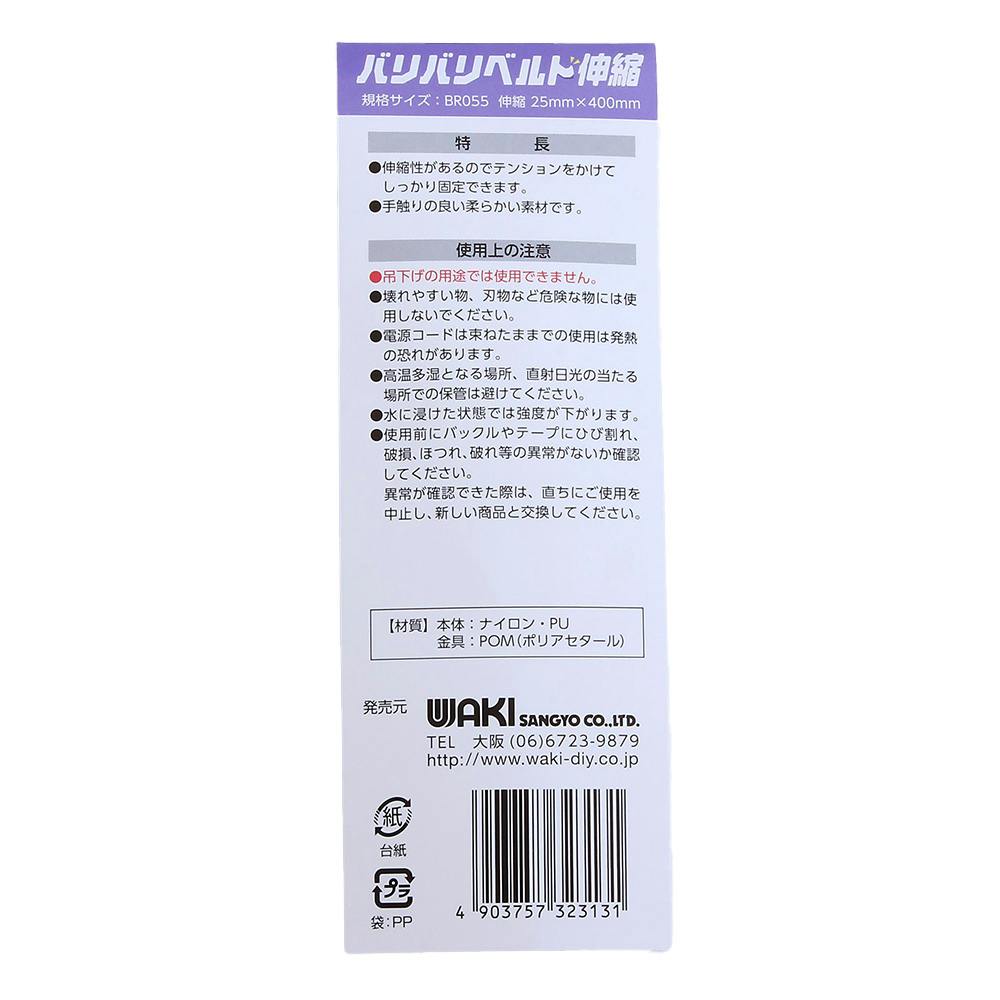 WAKI バリバリベルト 伸縮 黒 BR055 25×400mm