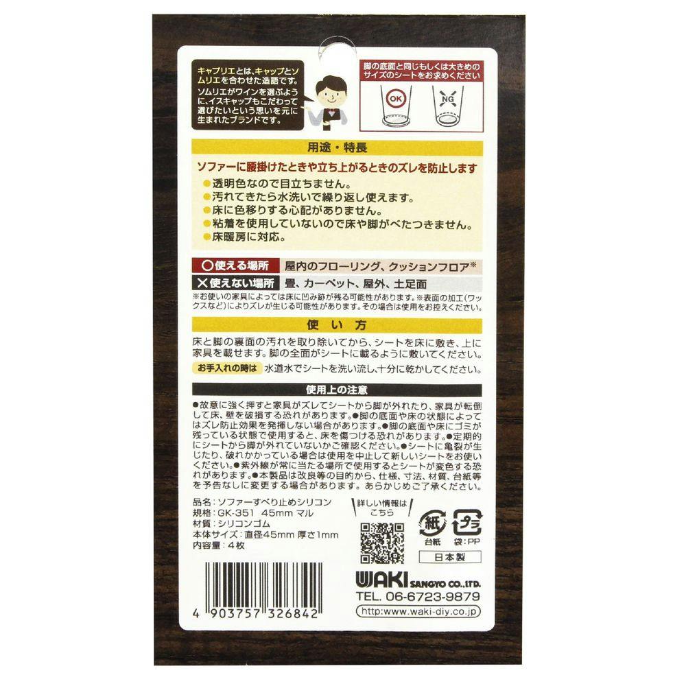 WAKI ソファーのすべり止め 丸 透明 GK-351 45mm