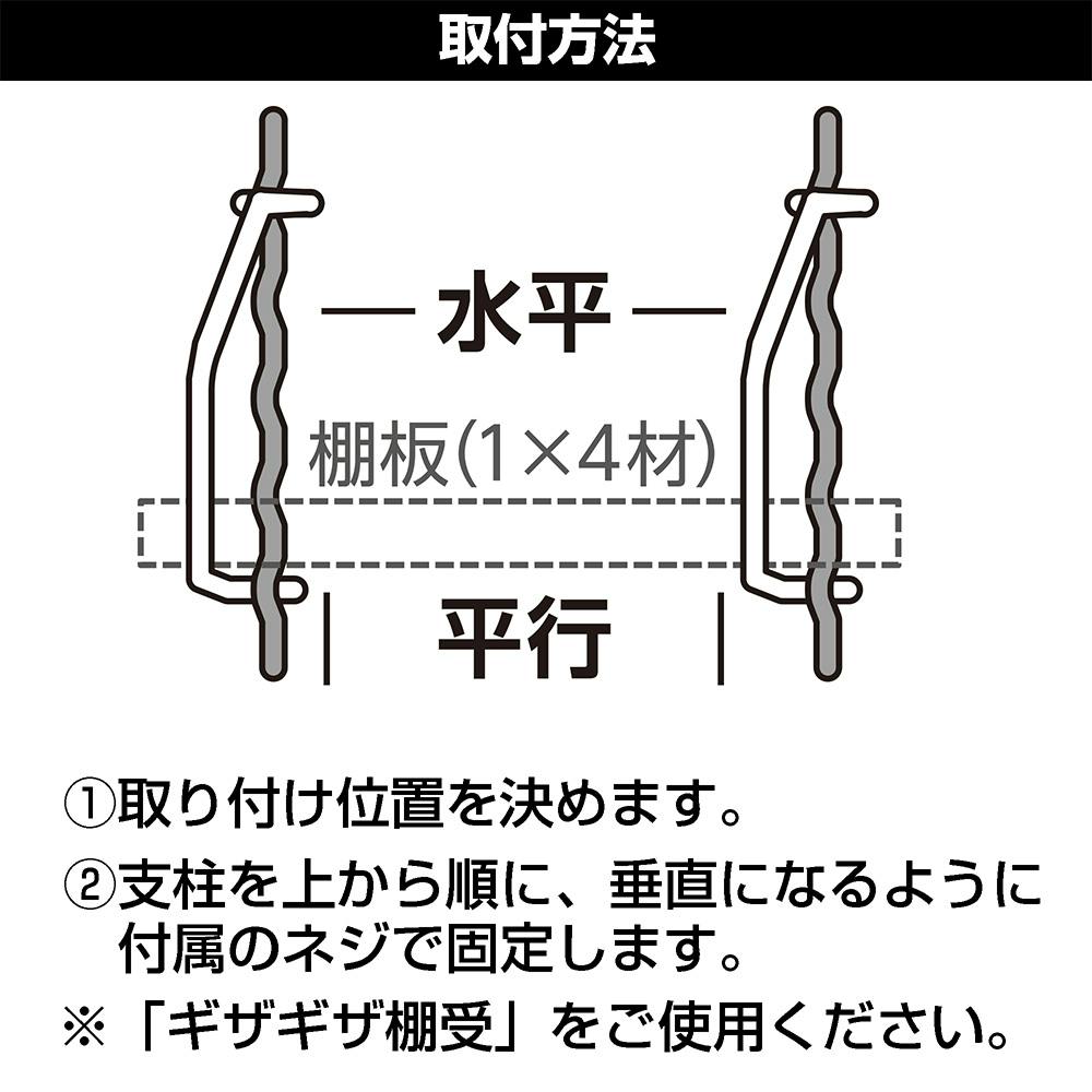 凹凸のあるくぼみ部分に別売りのギザギザ棚受で収納を作ることができる。