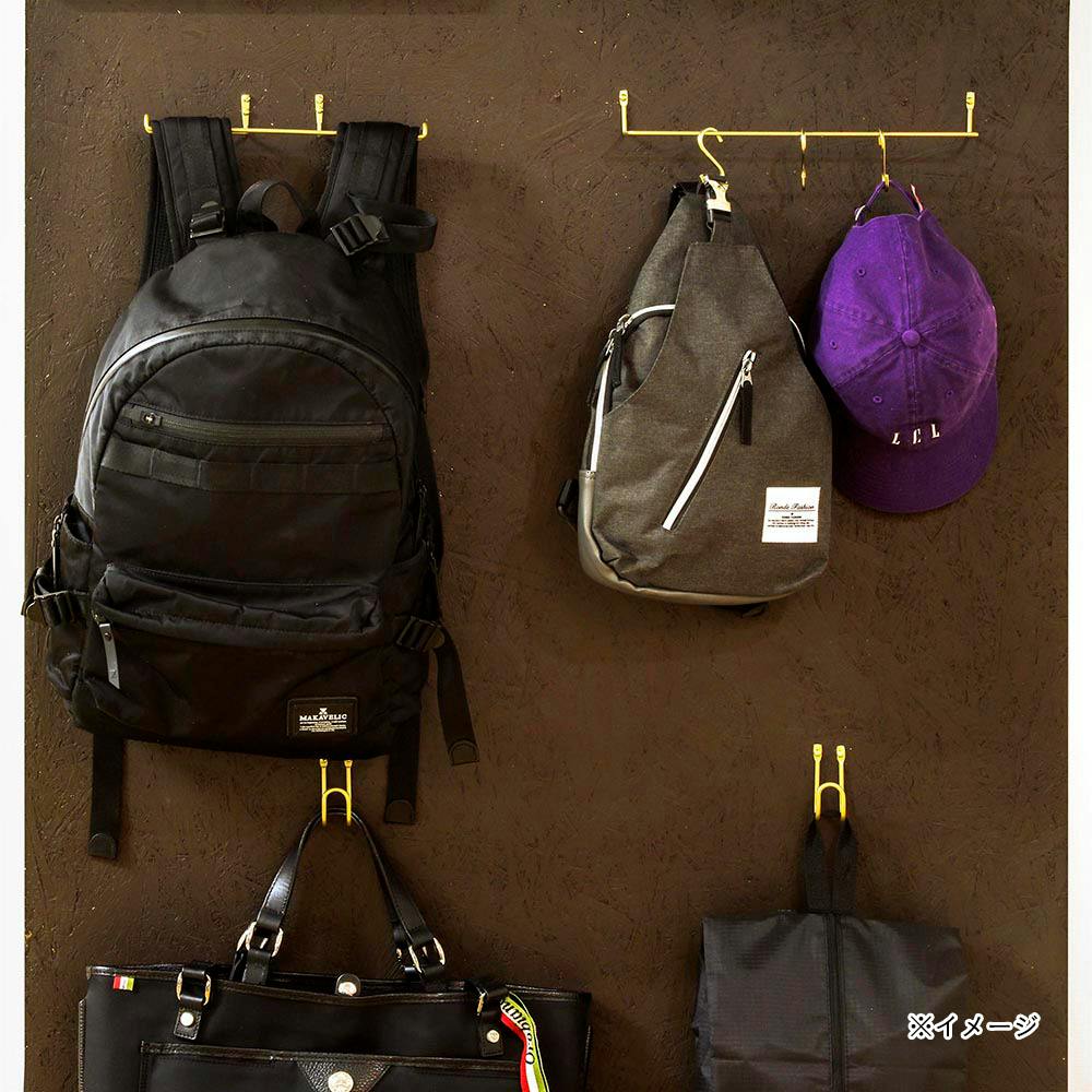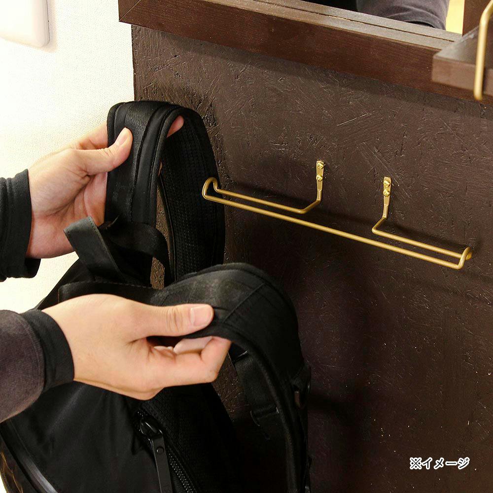 ネジが効く壁に付属のネジで固定し、リュックやカバンを掛けて収納することができる。