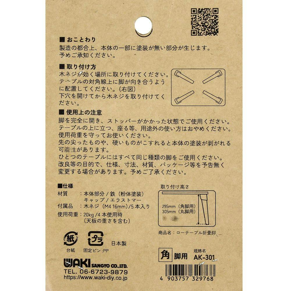 板に取付けるだけで簡単にテーブルを作ることができます。●折畳むことができるため、使わないときは省スペースで保管することができます。●マットブラック塗装仕上げなので、オシャレな風合いを楽しめます。