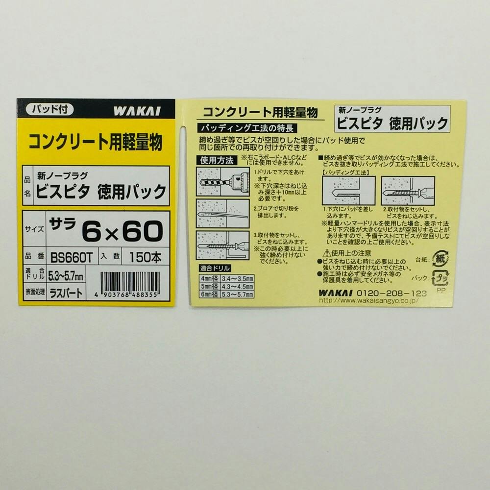WAKAI ビスピタ サラ BS660T 6×60mm 150本入 徳用パック